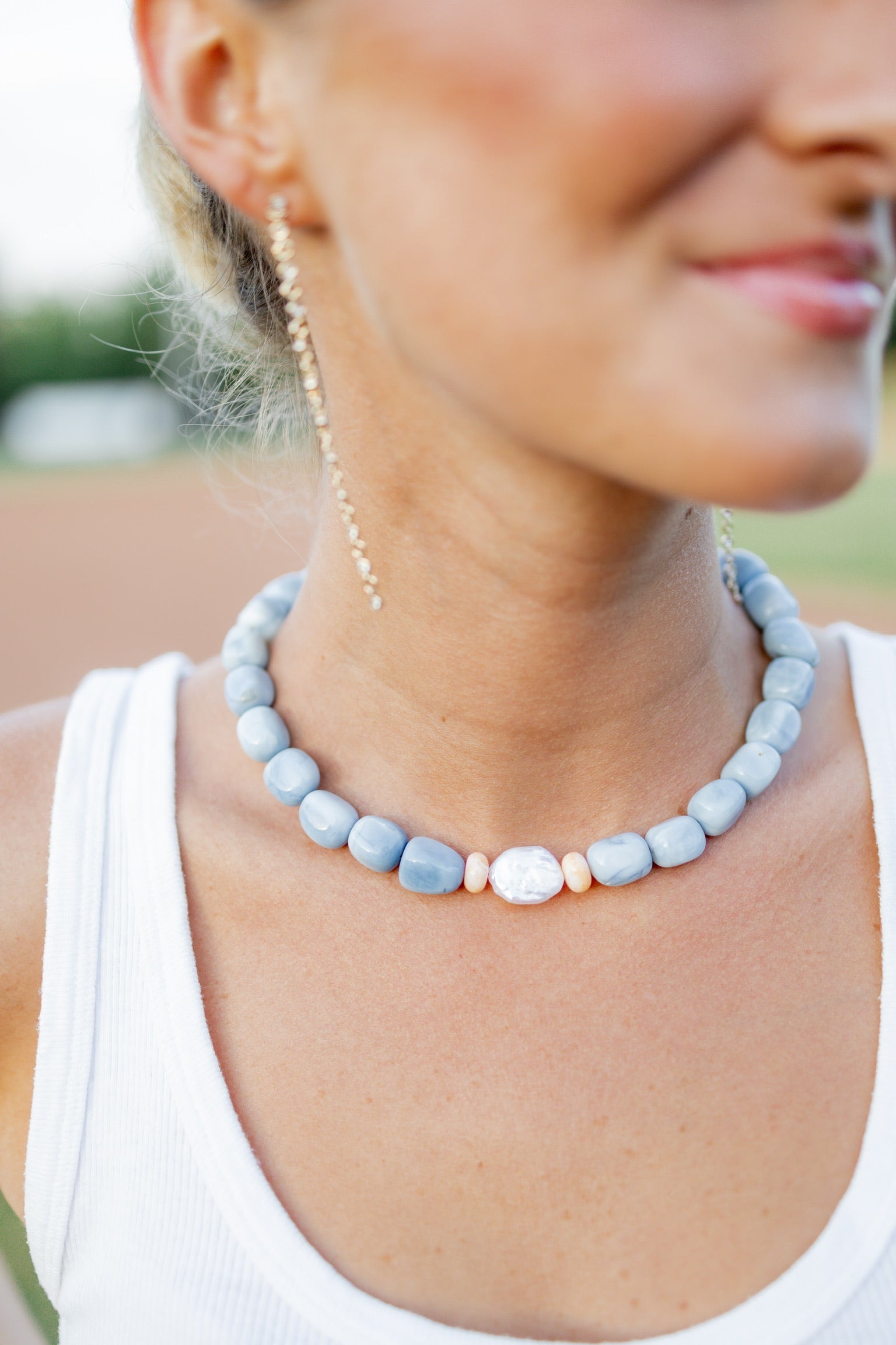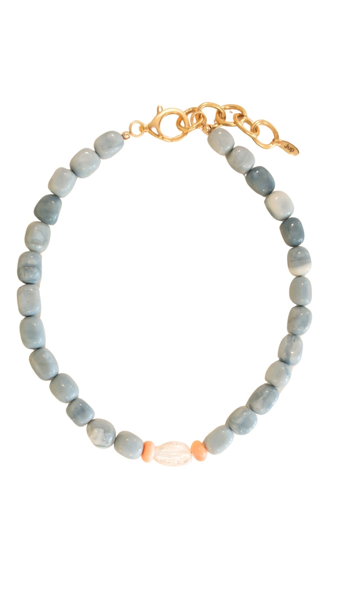 Unit price perUnique milky blue glass beads with an orange and pearl center! 16” with 2” extender