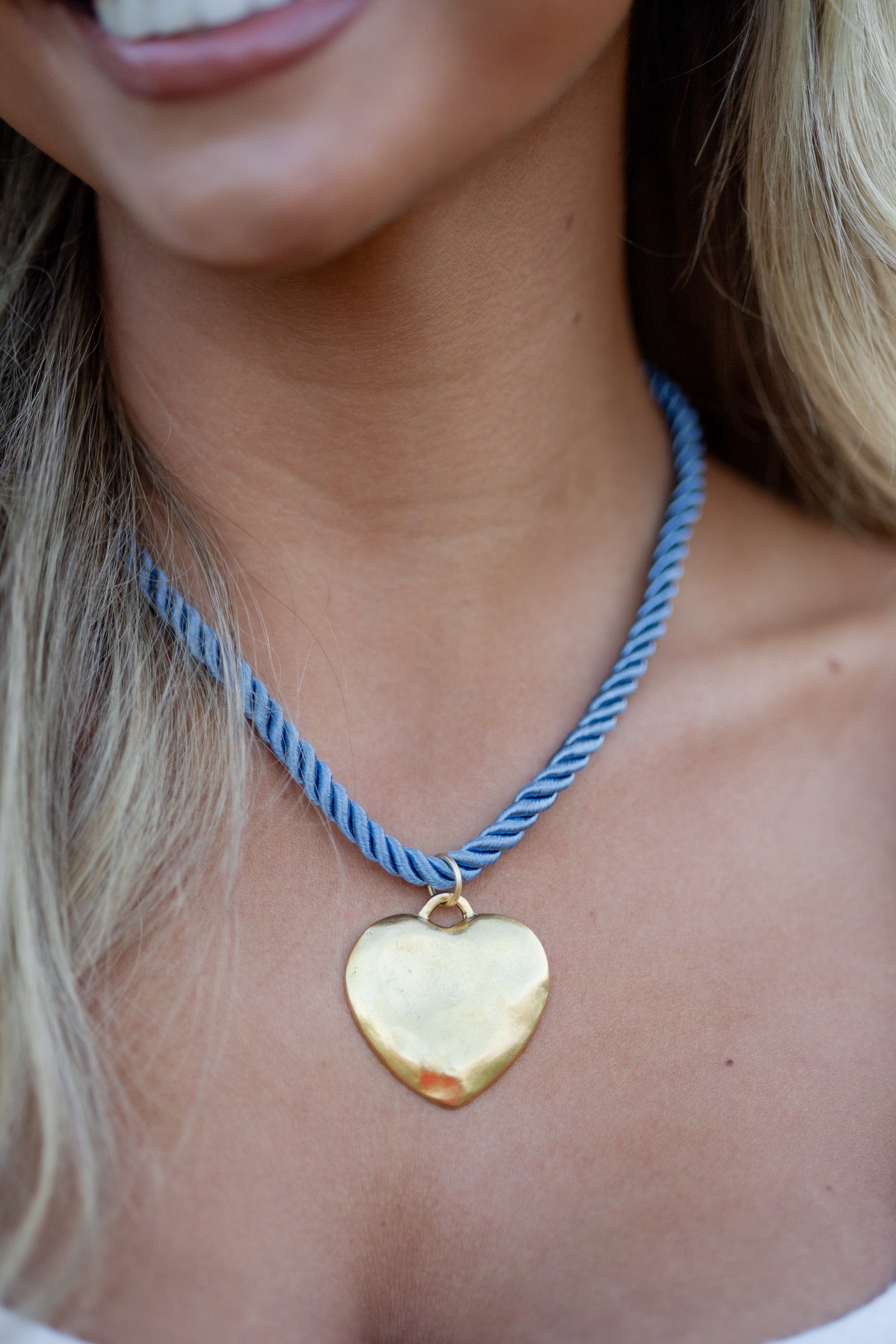 Unit price perOur thick sky blue rope cord with a unique large antique gold heart charm! 16" with 2" extender