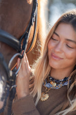 Unit price perA new Jup style, our navy bandana scarf necklace with 3 unique and fun charms! Made to tie in the back!