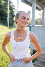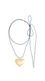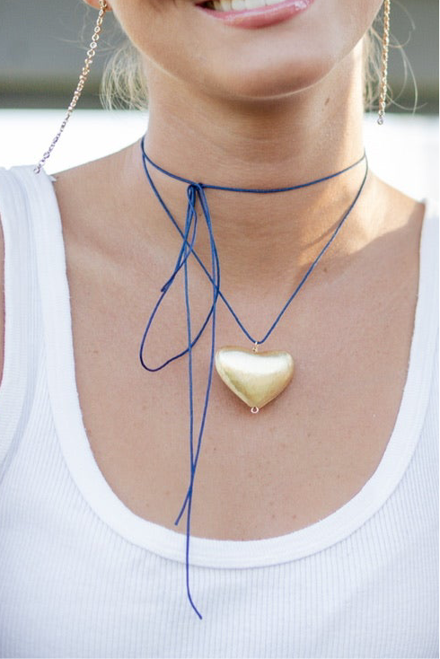 Unit price perThis cord can be styled many ways but we love it wrapped once and tied in a bow! Includes brushed gold puffy heart pendant!