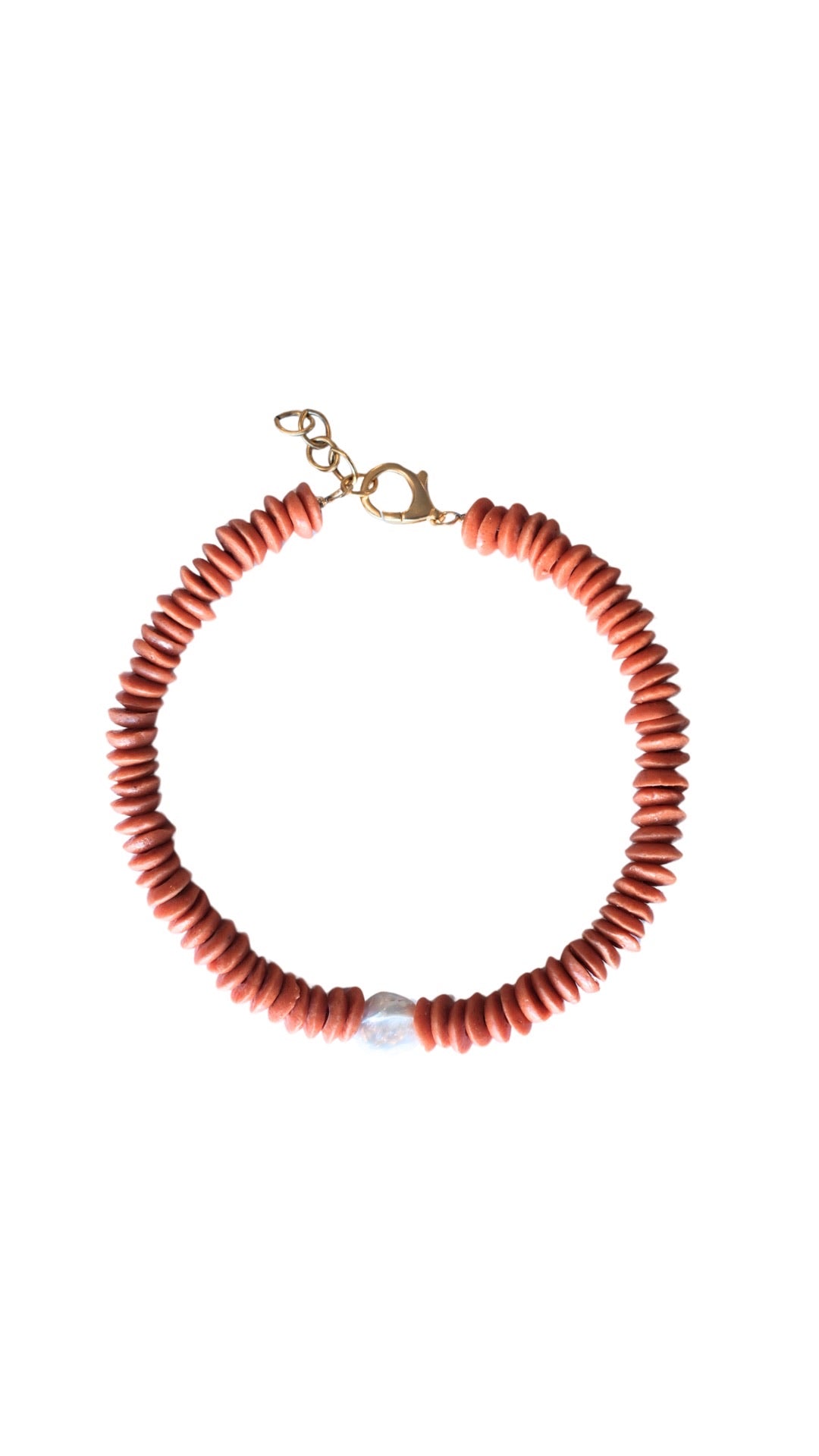 Unit price perOrange Ashanti disc beads with an oval shaped freshwater pearl center !!! 15” with 3” extender