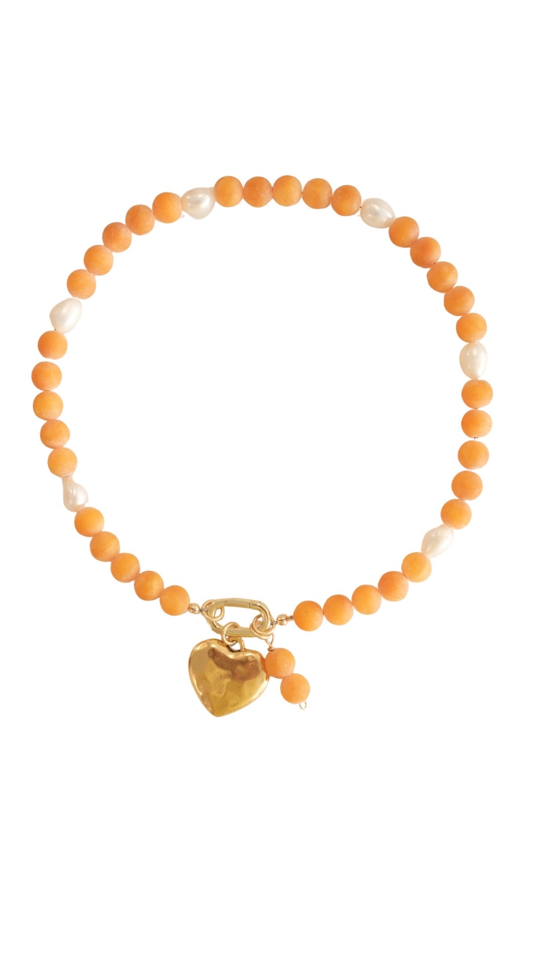 Unit price perOrange and pearl beads met with a golf filled carabiner clasp and two removable charms! 16”