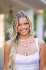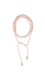 Unit price perOur best selling design back in a new style! Featuring gorgeous light pink pearl beads with two freshwater baroque pearls at the end. 4' 8" long and can be worn so many ways! Have fun styling !