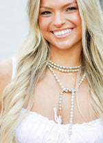 Unit price perOur best selling design back in a new style! Featuring gorgeous tan pearl beads with two freshwater baroque pearls at the end. 4' 8" long and can be worn so many ways! Have fun styling !
