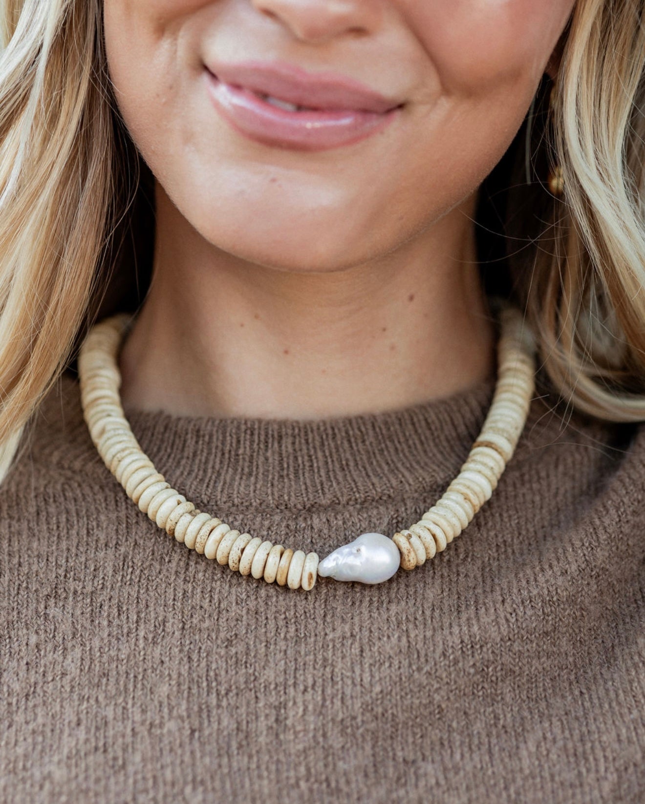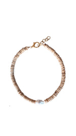 Unit price perGorgeous oak wood colored beads with a freshwater pearl center. 15” with 3” extender