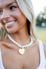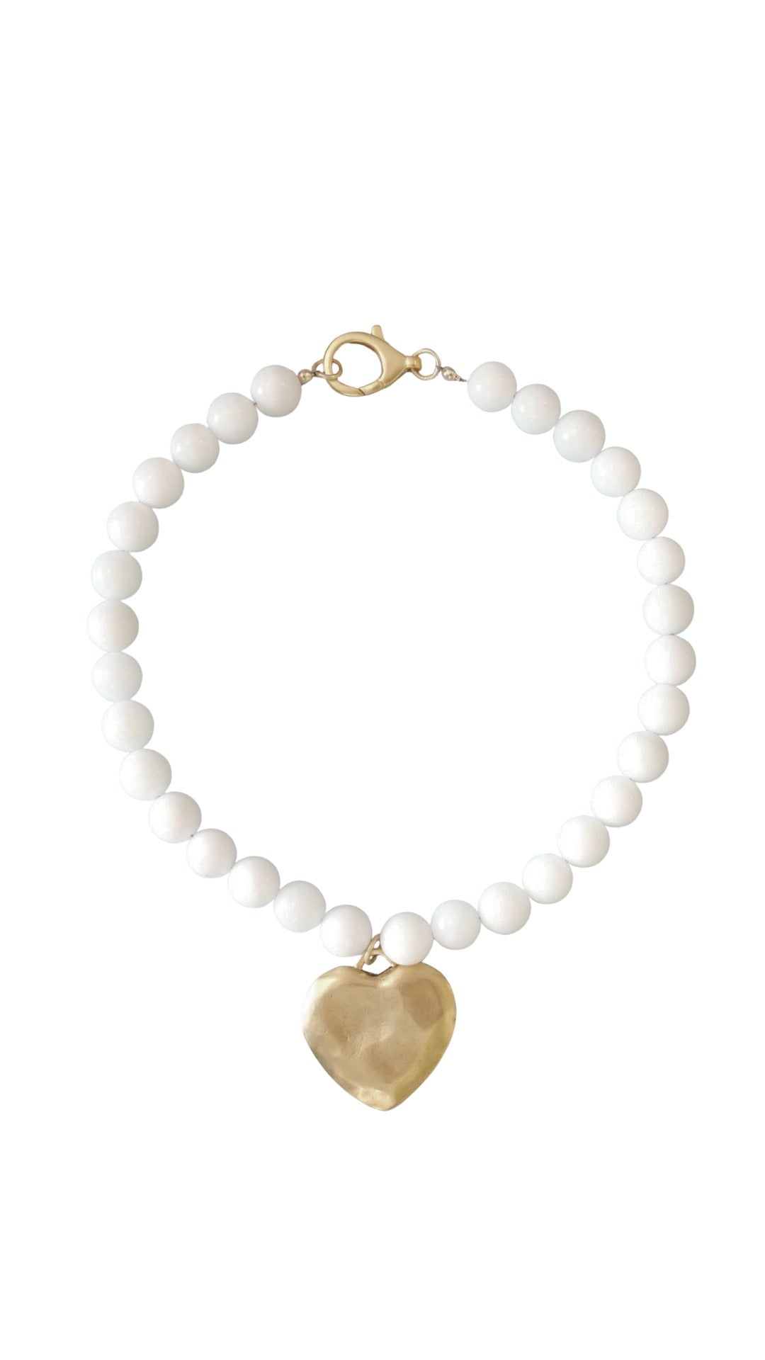 Unit price perWhite glass beads with a 12k antique gold heart pendant! 16” with 2” extender