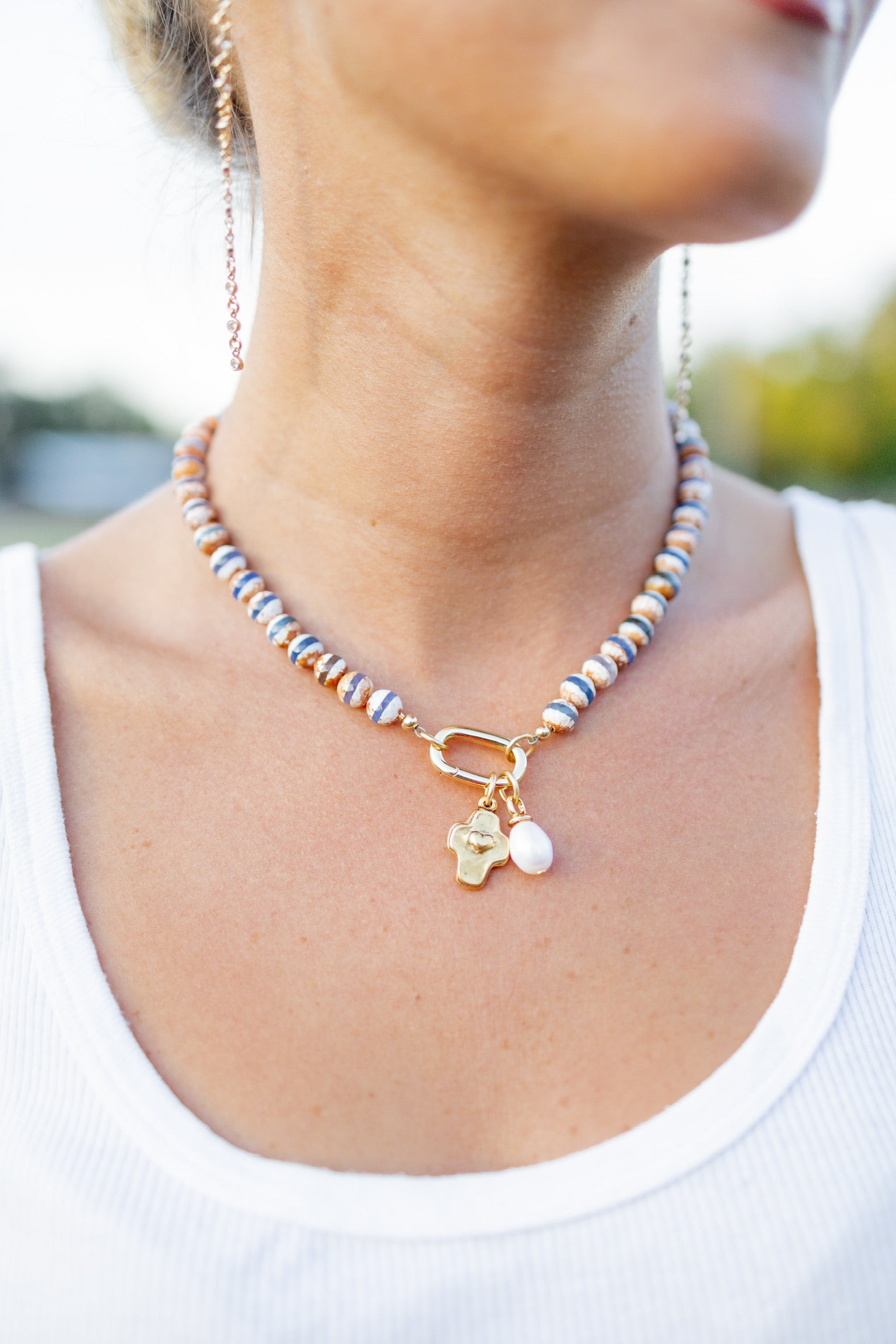 Unit price perPerfect for all Auburn girls! The Toomers Charm is 16” of Orange and blue striped beads with a gold filled carabiner clasp and two removable charms!