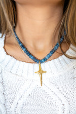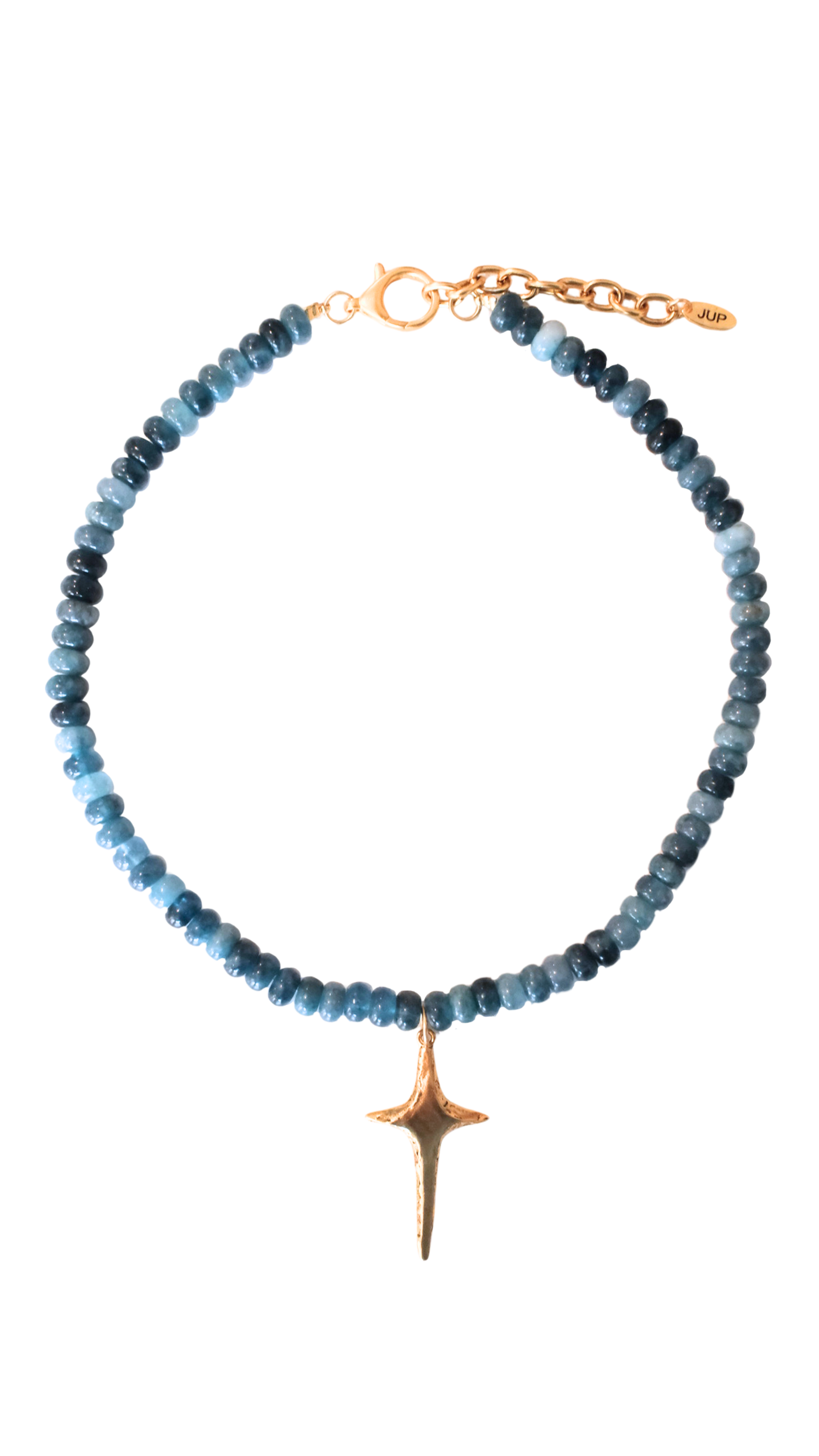 16” of mixed blue beads with star pendant. 2” extender