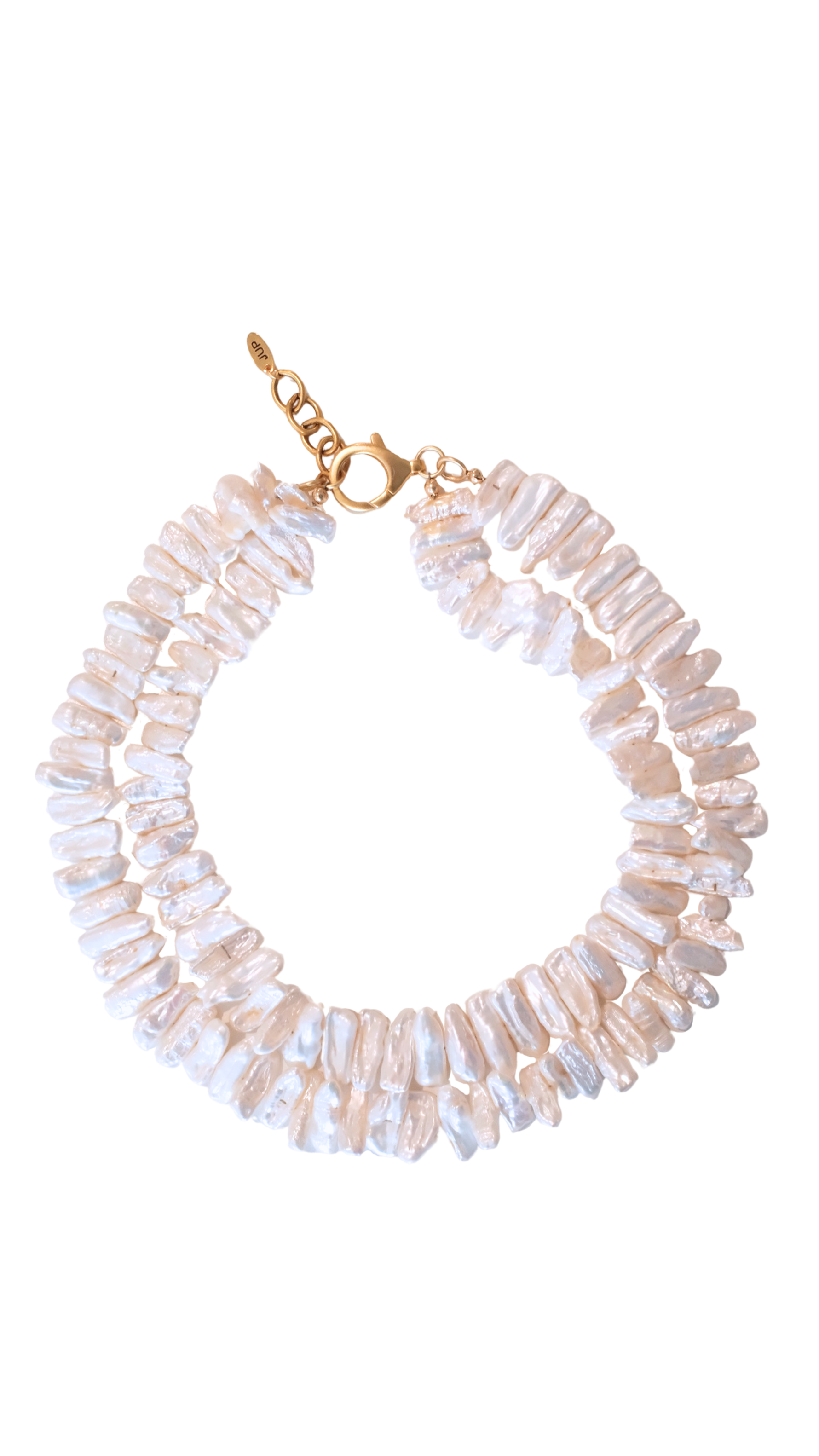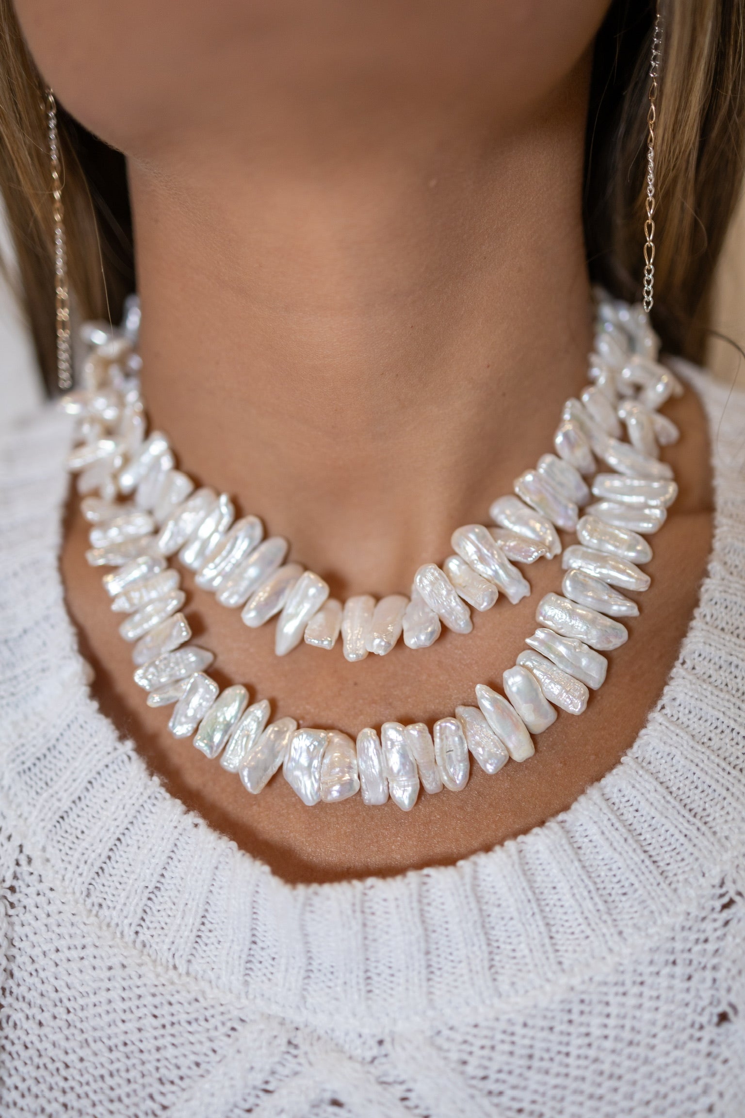 Unit price perOur classic Tracey but with a twist! 2 layers of unique pearl beads making the perfect statement piece! 16” with 2” extender
