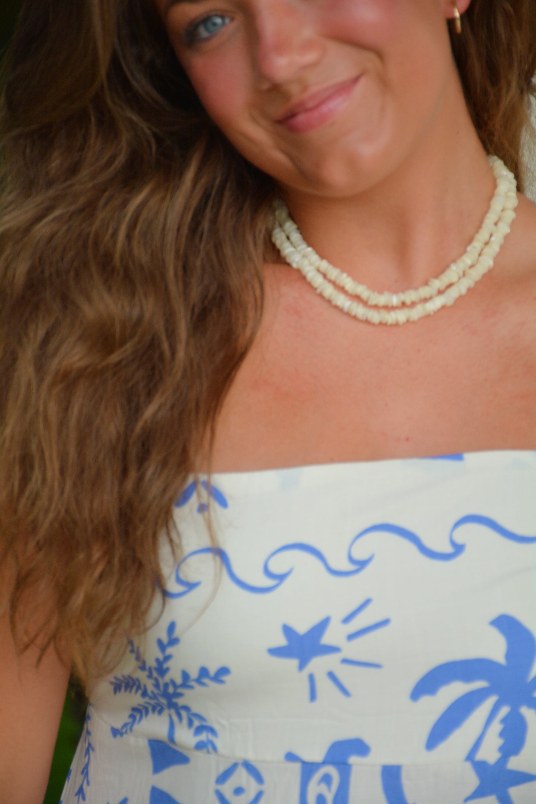 A gorgeous shell bead double wrap necklace! 30" with 2" extender!