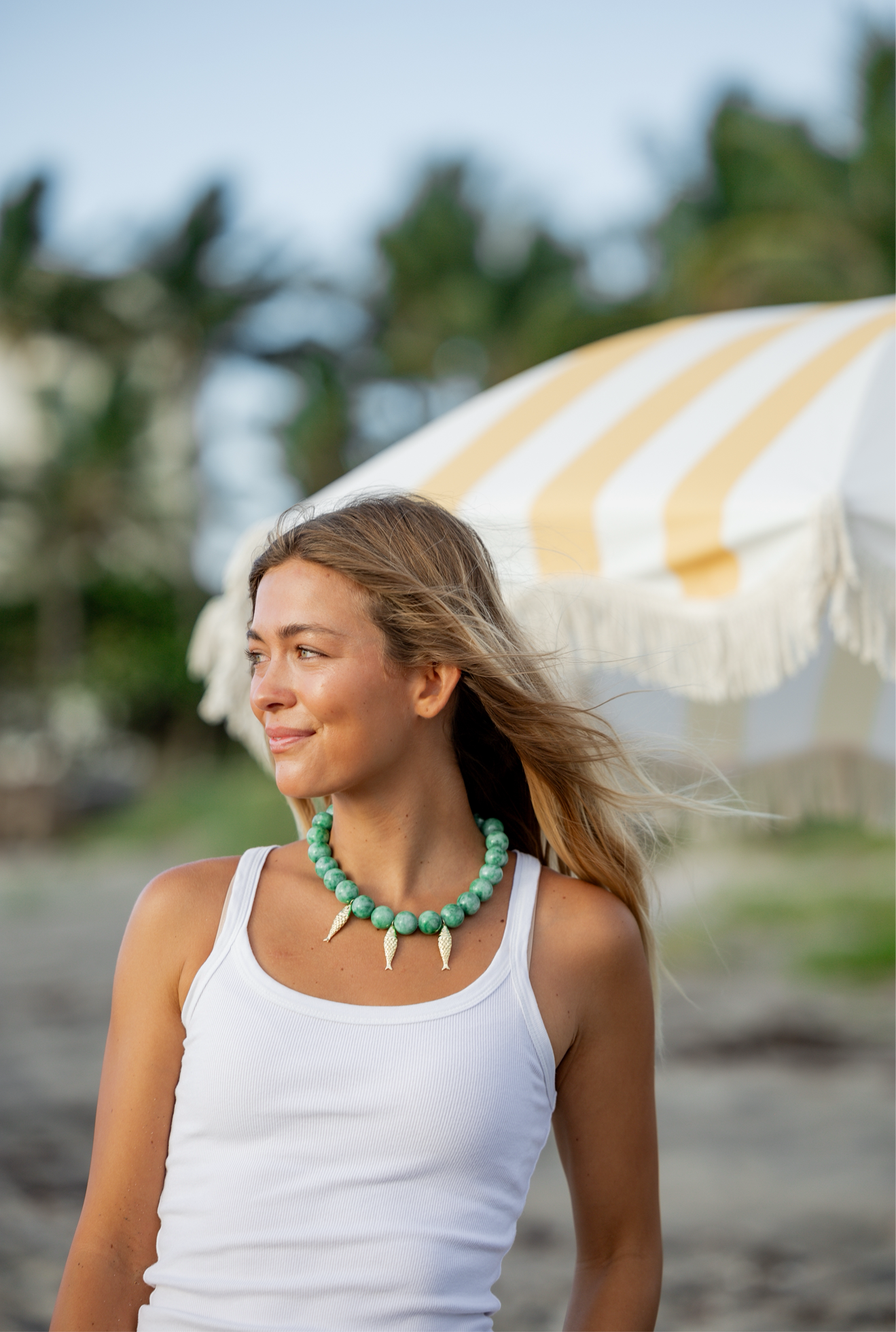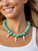 Unit price perBright green large glass bubble beads with three gold fish pendant !!! 16” with 2” extender
