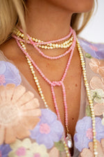 Our best selling design back in a new and fun way! The Kelly Wrap Daisy is made with gorgeous pale yellow pearls with two freshwater baroque pearls. 4' 8" and can be worn so many ways! Have fun styling!