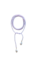 Our best selling design back in a new color! Featuring gorgeous lavender colored beads with two freshwater baroque pearls at the end. 4' 8" long and can be worn so many ways! Have fun styling!